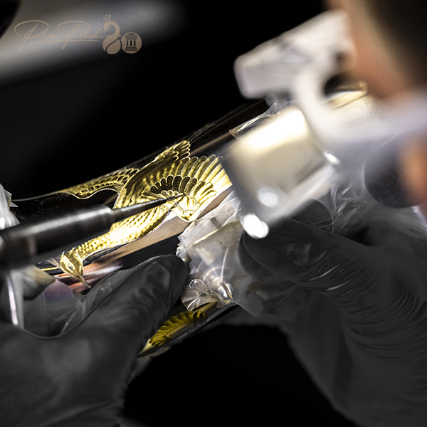 グラヴィール彫刻家のマイゼィク・ローベルト氏により約1週間かけ、1本1本手作業で彫刻しております。