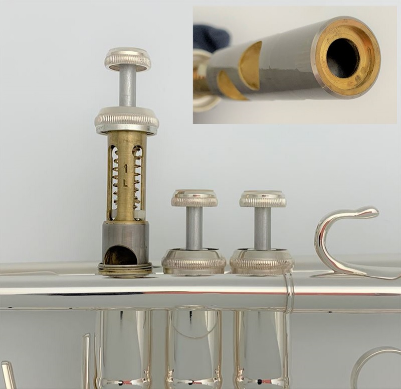 上部はニッケルシルバー、下部はイエローブラスと異なる材質を組み合わせることで程よい抵抗感を生み出します。